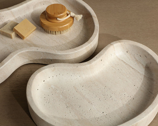 SKU:113108Amoeba Tray (Set Of 2) - Travertine Look
