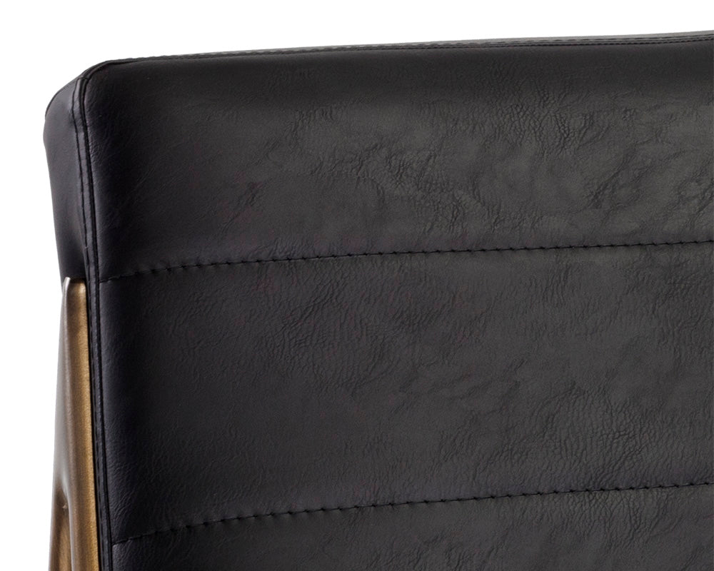 A handsomely designed lounge chair with a sculpted seat and seatback for comfort and style. Stocked in bravo cognac faux leather with an exposed rustic bronze steel cantilever frame. Can be placed in urban and contemporary dining and office spaces.