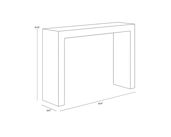 This console makes a bold statement with its clean lines and concrete construction in grey and black. Ideal for small spaces with its narrow depth.