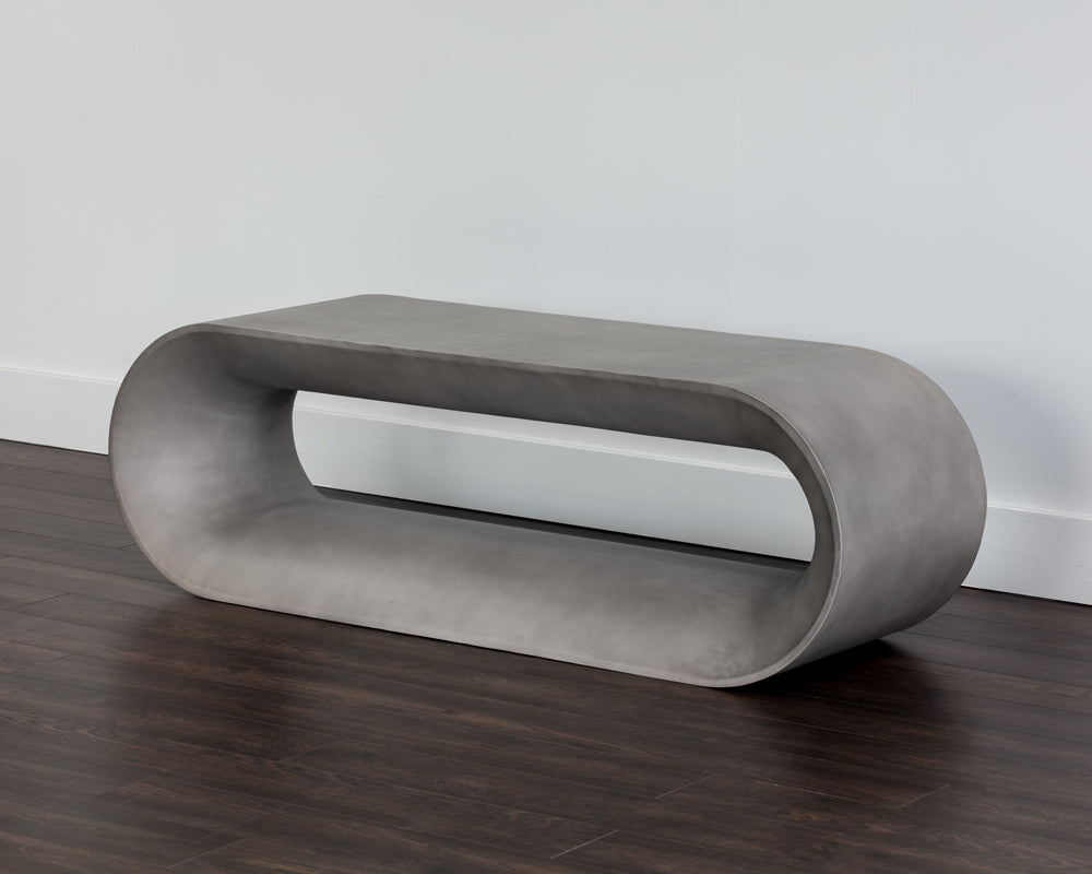 This contemporary concrete bench combines unique form and function. Features a spacious bench with an open frame that can be used for storage. A versatile piece for