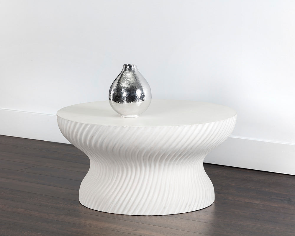 With a mesmerizing shape, this round coffee table is well defined by its stunning swirl indentation on the base.