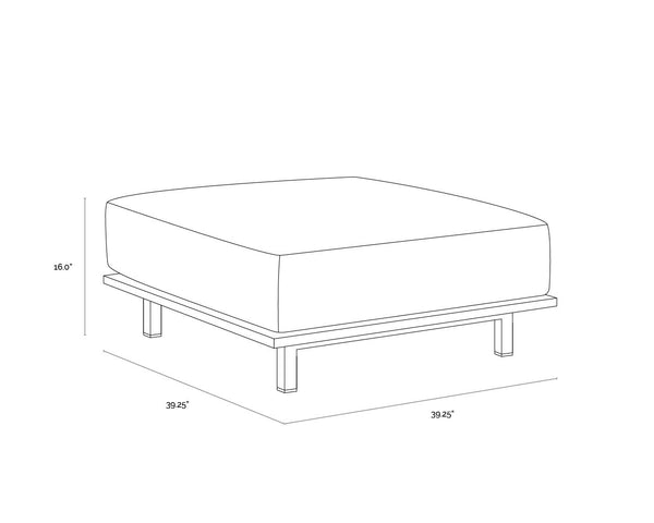Appreciate warmth and sunlight while seated in an outdoor dining space inspired by the Arizona desert. This modern ottoman features upholstery in palazzo cream fabric, atop a natural teak wood frame. Finished with a powder-coated aluminum base. Suitable for indoor and covered outdoor spaces.