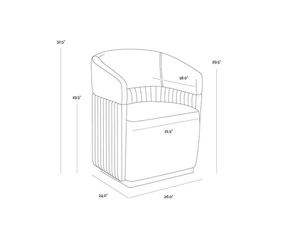 Guests will be intrigued by the unique design details found on this wheeled lounge chair. Designed with contemporary styling, this chair features a channel tufted seatback in abbington black fabric and cantina black bonded leather with a brass frame. Handle with Care: This design has been crafted with bonded leather. Bonded leather is a blend of reconstituted leather and synthetic materials crafted to reflect the natural characteristics of leather; as such, colour variations, markings, wrinkles, grooves and light scratches are acceptable and appreciated characteristics. No two pieces are alike. Visit our Product Care page for more information on how to ensure the lasting beauty of this piece.