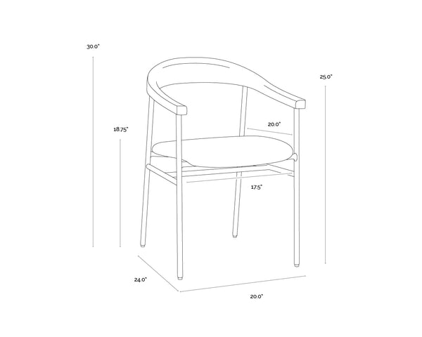 Taking inspiration from mid-century design, this dining armchair is infused with modern elements that result in a beautiful and simple style. Features a smoke grey rubberwood seatback and an upholstered polo club stone performance fabric cushion. Completed with steels legs in an antique brass finish. Performance fabric is moisture repellent, durable and easy to clean. Suitable for various dining, kitchen and bar spaces of all sizes.