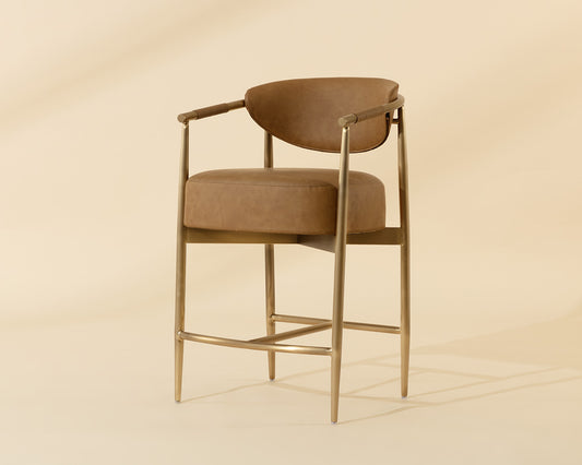 Every detail that makes up the handsome Heloise Barstool is designed with purpose. Bravo black faux leather upholstery and rope detailing is paired with powder-coated gold stainless steel for optimal style and comfort. Visible stitching on the seat and backrest accentuates the chair's smooth contours. This elegant barstool will perfectly complement any dining space. Handle With Care: This design has been crafted with faux leather. Faux leather is manufactured to reflect the natural characteristics of leather; as such, colour variations, markings, wrinkles, grooves, and light scratches are appreciated characteristics. No two pieces will be alike. Visit our Product Care page for more information on how to ensure the lasting beauty of this piece.