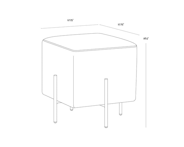 A square ottoman from our Urban Unity collection. This compact ottoman will add a minimalist mid-century style to any space. A tubular black powder coated steel frame creates additional intrigue. Available in dorset platinum performance fabric. Performance fabric is moisture repellent, durable and easy to clean.