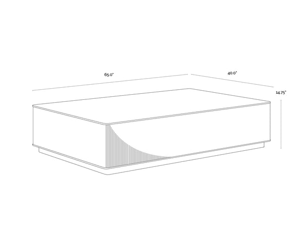 The Kalla Coffee Table brings form and function to life. Crafted with rustic oak wood and oak veneer with vertical reeding. A brushed gold steel base finishes the look.