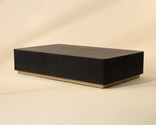 The Kalla Nightstand brings form and function to life. Crafted with a charcoal oak veneer with vertical reeding. A gold steel base finishes the look. As wood is an organic, porous material, these pieces will contain natural variation of texture and may also exhibit fine indentations and cracks. Wood pieces will also display a disparity of colour and grain, and visible knots and burls that add to the character of each piece.