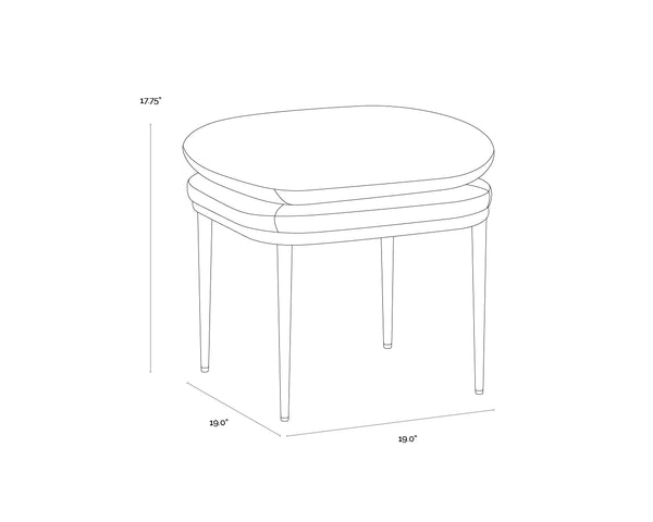 Rejuvenate any space with this contemporary stool that features a sleek design. Upholstered in chacha cream and meg taupe fabrics with a double cushioned seat. Completed with a dark bronze stainless steel base.