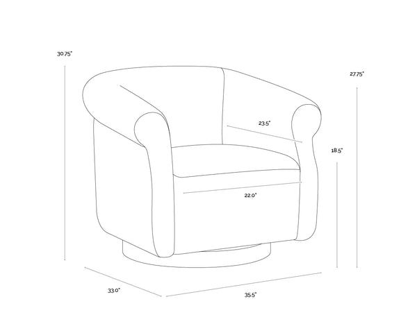 The Libby Swivel Lounge Chair is a high-style iteration of modern invention. Upholstered in hailey moon fabric, and with a polyurethane foam fill back and seat and swivel base, this attractive and shapely armchair brings minimal design to centre stage.