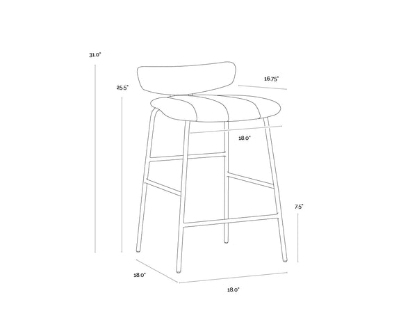 A chic counter stool featuring a channel tufted seat and a low profile seatback in dillon cream faux leather. A brushed gold stainless steel frame completes this feminine look. Suitable for various dining, kitchen and bar spaces of all sizes. Handle With Care: This design has been crafted with faux leather. Faux leather is manufactured to reflect the natural characteristics of leather; as such, colour variations, markings, wrinkles, grooves, and light scratches are appreciated characteristics. No two pieces will be alike. Visit our Product Care page for more information on how to ensure the lasting beauty of this piece.