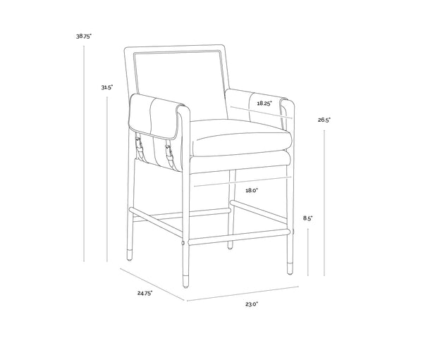 With influence from vintage design, the Mauti Counter Stool evokes a charming and rustic mid-century appeal. Upholstered in shalimar tobacco leather with dual buckle flap detailing on the armrests. Completed with a brown solid oak wood frame with brushed gold metal foot caps. Handle with Care: This design has been crafted with 100% top grain leather. Leather is a natural material; as such, colour variations, markings, wrinkles, grooves and light scratches are acceptable and appreciated characteristics. No two pieces are alike. Visit our Product Care page for more information on how to ensure the lasting beauty of this piece.