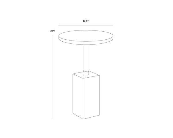 The Mizani End Table brings sculptural simplicity to any space. Crafted from concrete with a marble-like sage finish, it pairs a cylindrical top with a block base, joined by a slim antique brass steel stem. It makes for an ideal accent piece beside a sofa or chair.