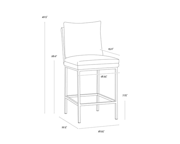 This counter stool features a clean and comfortable design. Designed with a cushion-like seat back in bravo black faux leather with antique brass iron legs. Suitable for various dining, kitchen and bar spaces of all sizes. Handle With Care: This design has been crafted with faux leather. Faux leather is manufactured to reflect the natural characteristics of leather; as such, colour variations, markings, wrinkles, grooves, and light scratches are appreciated characteristics. No two pieces will be alike. Visit our Product Care page for more information on how to ensure the lasting beauty of this piece.