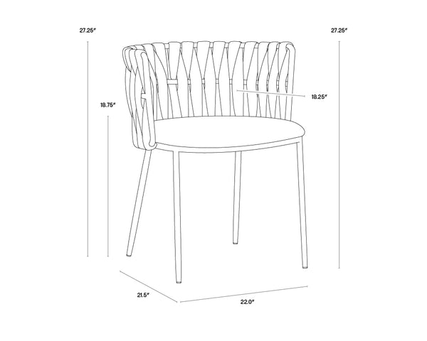 Bold and unconventional, this contemporary dining armchair features an eye-catching design that will bring drama to any dining space. Features a unique weaved backrest that is upholstered in our belfast heather grey fabric. Completed with black powder-coated steel frame in a smooth finish.