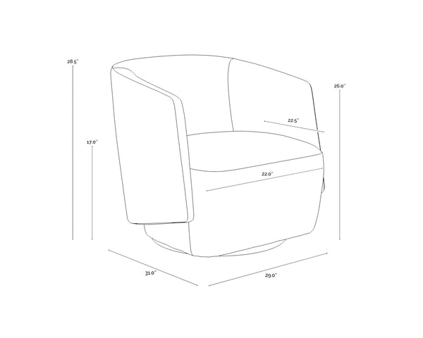 Velvety soft fabric and inviting curves give the Sarina Swivel Lounge Chair a relaxing experience. This stylish two-tone design is expertly upholstered with meg taupe fabric on the seat interior and meg gold fabric on the back exterior.