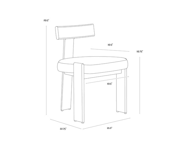 The Titan Dining Armchair is a masterful re-iteration of classic modern design. Palazzo cream performance fabric and a striking aluminum frame come together to create an unforgettable impression.