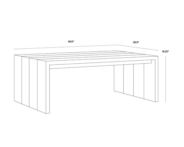 Relax in a clean, modern space with this rectangular coffee table from our Outdoor by SUNPAN collection. Crafted with solid teak wood panels for a classic silhouette. Suitable for indoor and covered outdoor spaces.